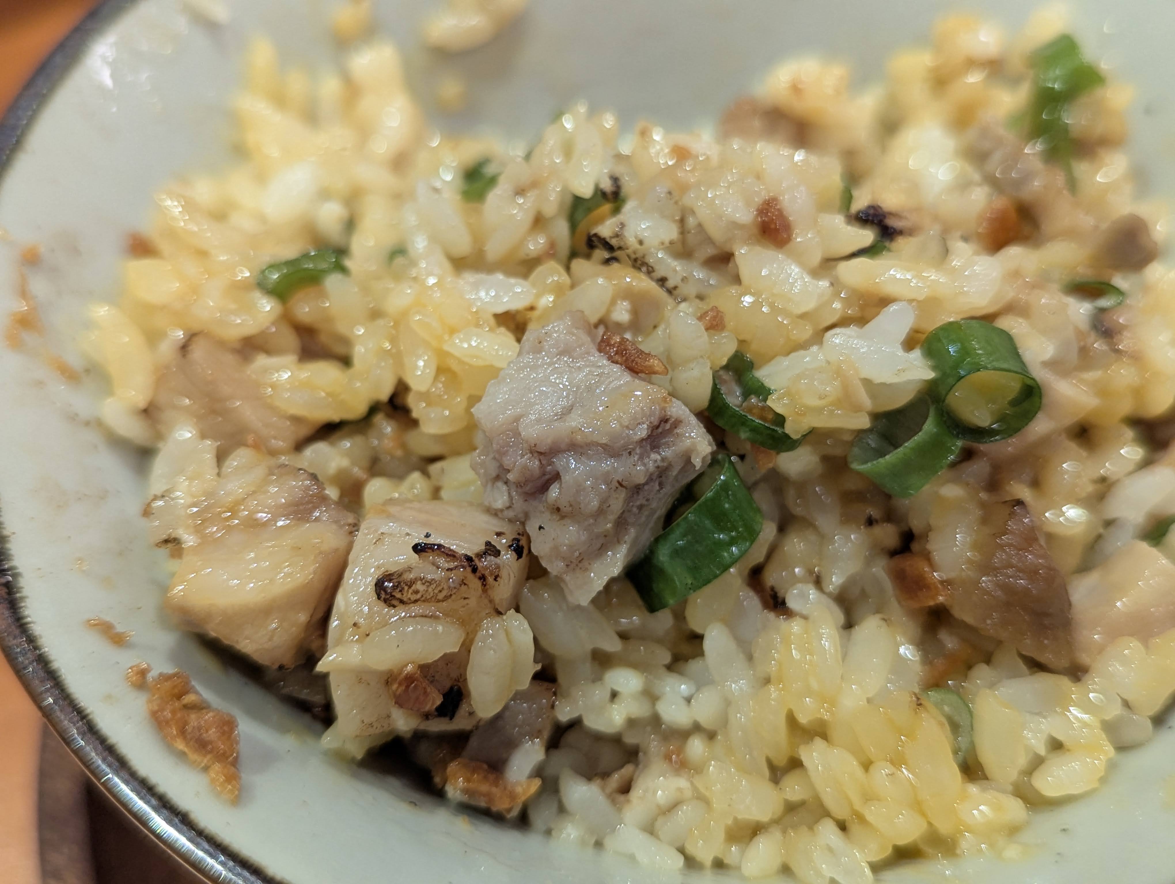 澱粉+澱粉是日本人吃拉麵的標配, 所以一定要來上一碗叉燒飯。切小塊的叉燒肉淋上美乃滋後再炙燒, 香氣誘人, 而醃漬過的蛋黃搓破後與粒粒分明的白飯攪拌均均後, 所有食材一併入口, 還不錯吃耶, 推薦可點。
